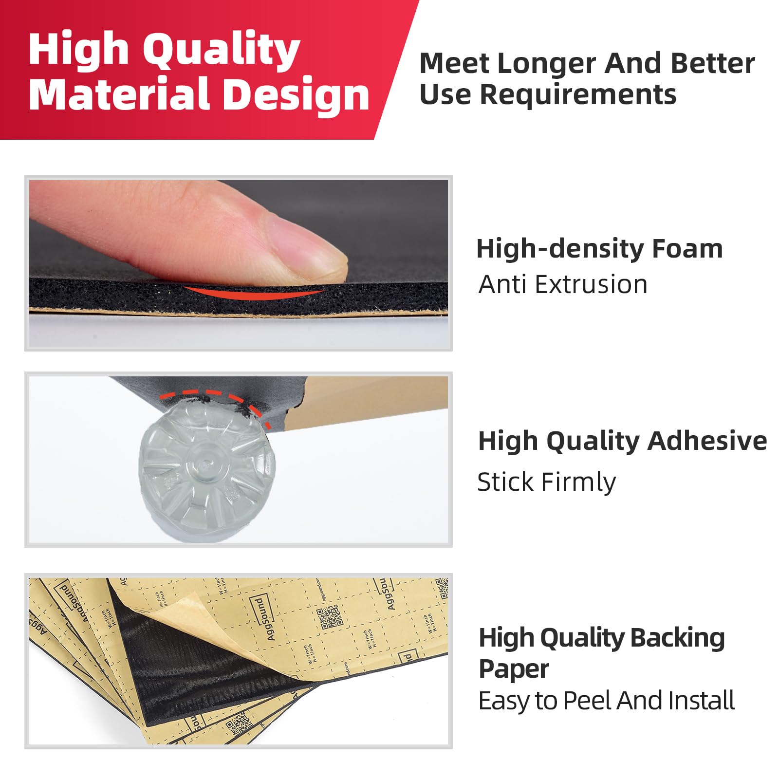 - [4mm High Quality Closed Cell Foam, Provide Better Sound & Heat Insulation] Our automotive sound deadener is composed of three layers of high quality material, including 4mm high density closed cell foam, high quality back glue and back paper.
